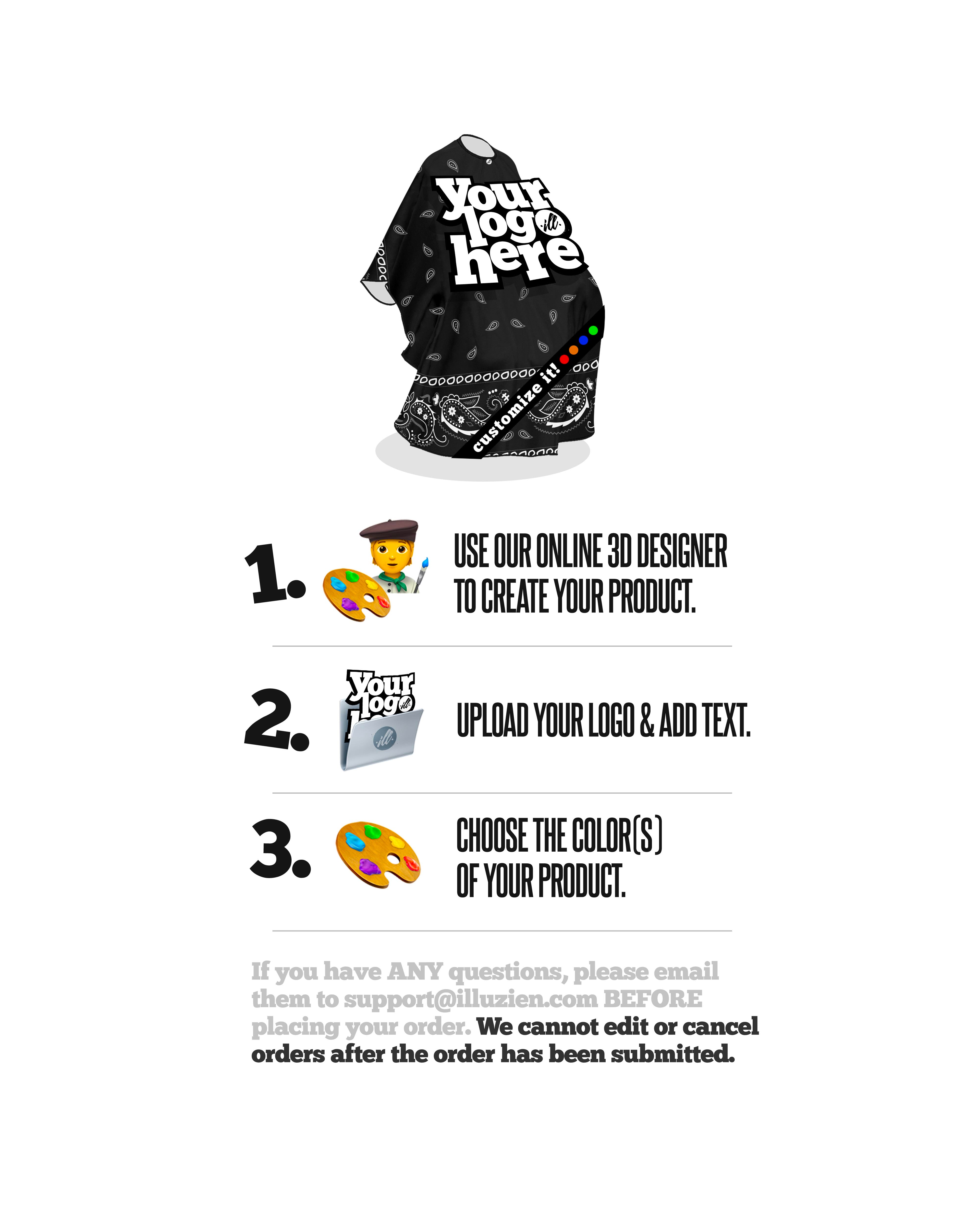 If you have ANY questions, please send them to support@illuzien.com BEFORE placing your order.